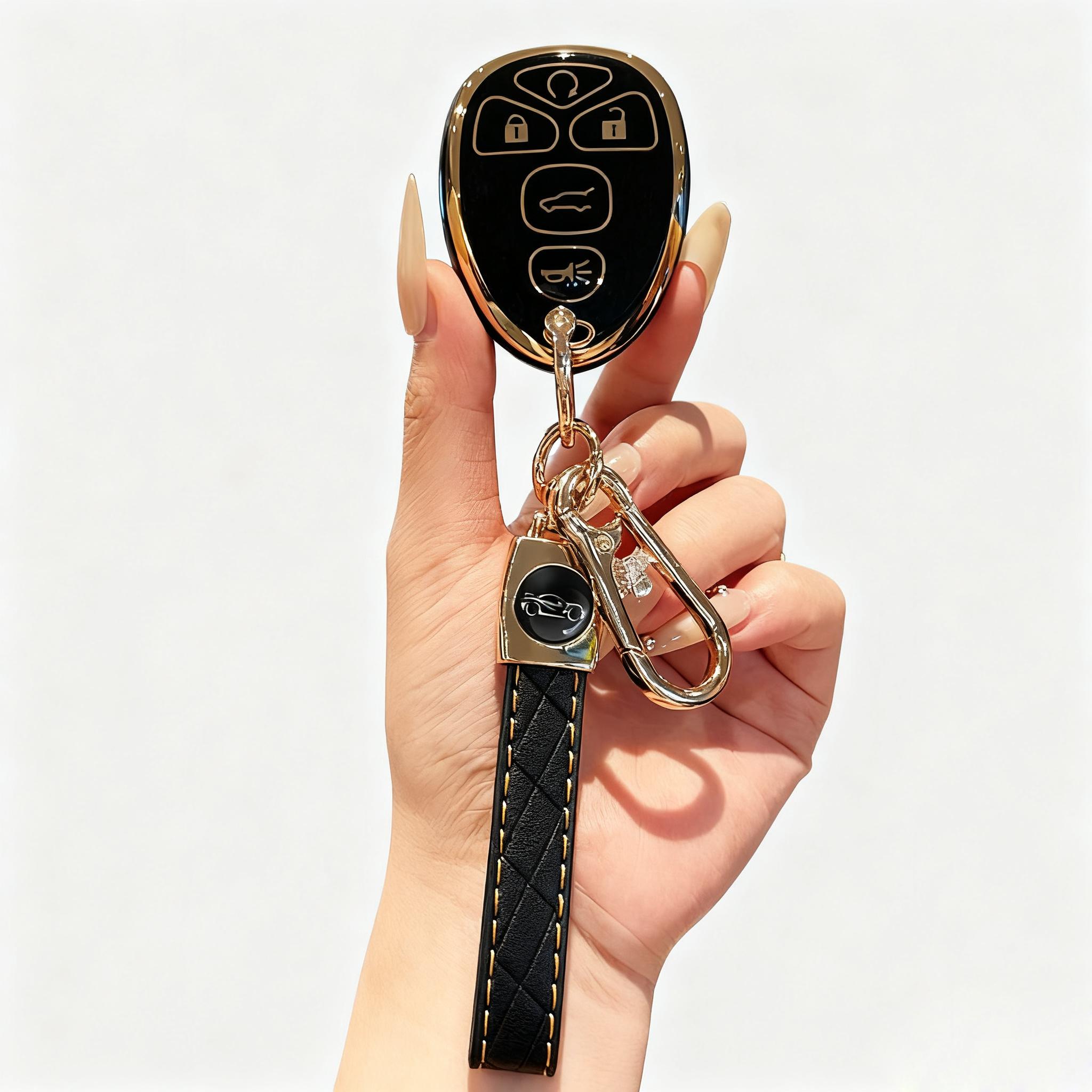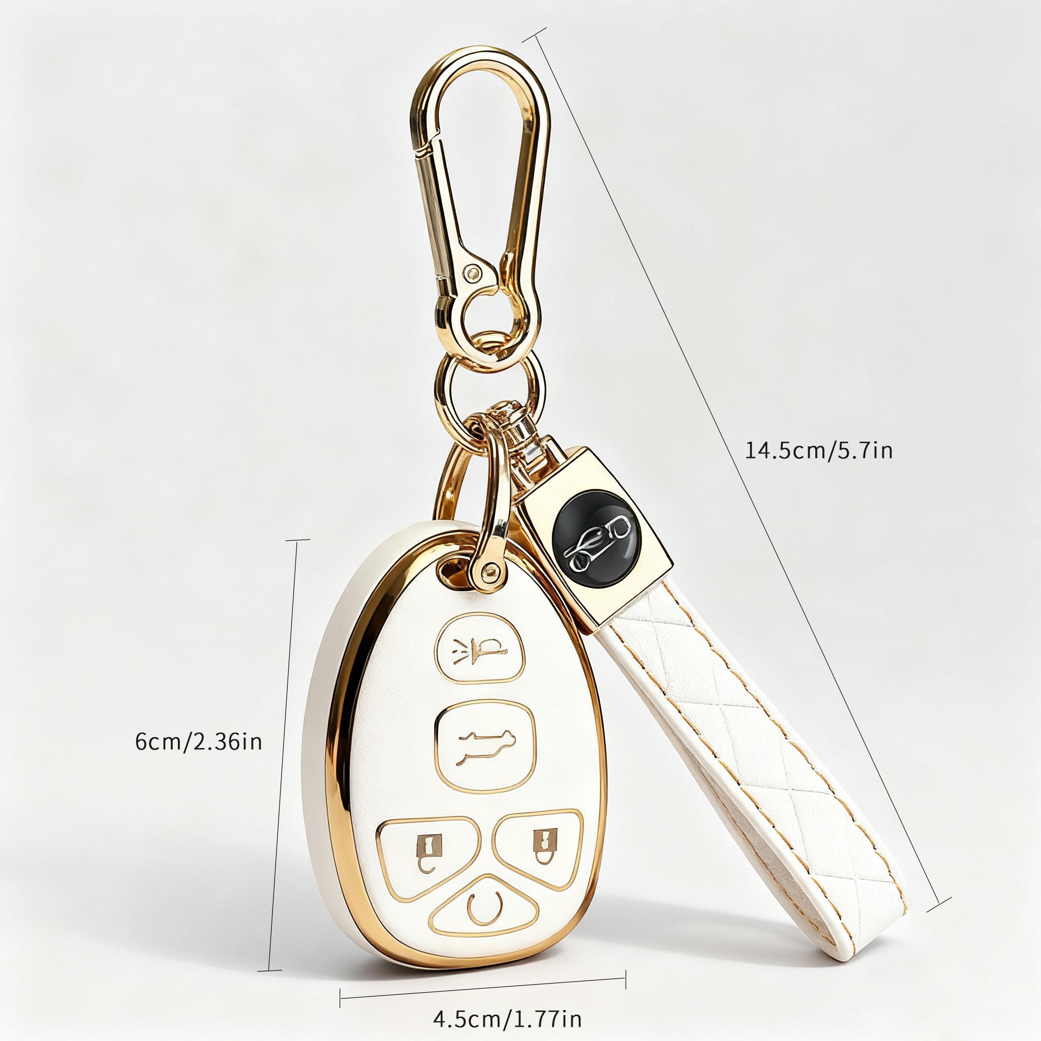 Key Fob Shell for Chevy Suburban Tahoe Traverse/GMC Acadia Yukon/Cadillac Escalade SRX/Buick Enclave/Saturn Outlook 5 Button Car Keyless Entry Remote Key Fob Case Cover (Black White) Smart Fob Replacement Cover
