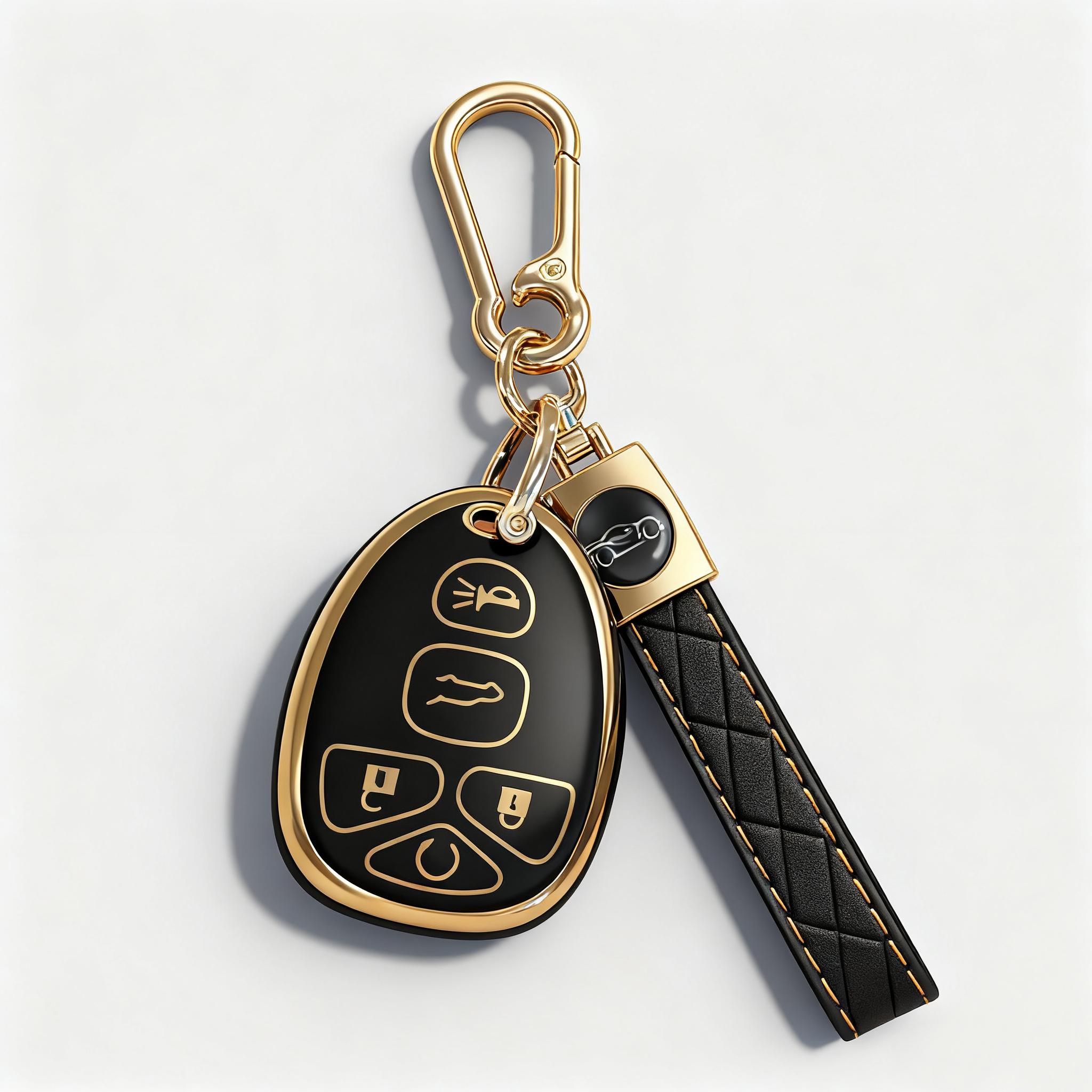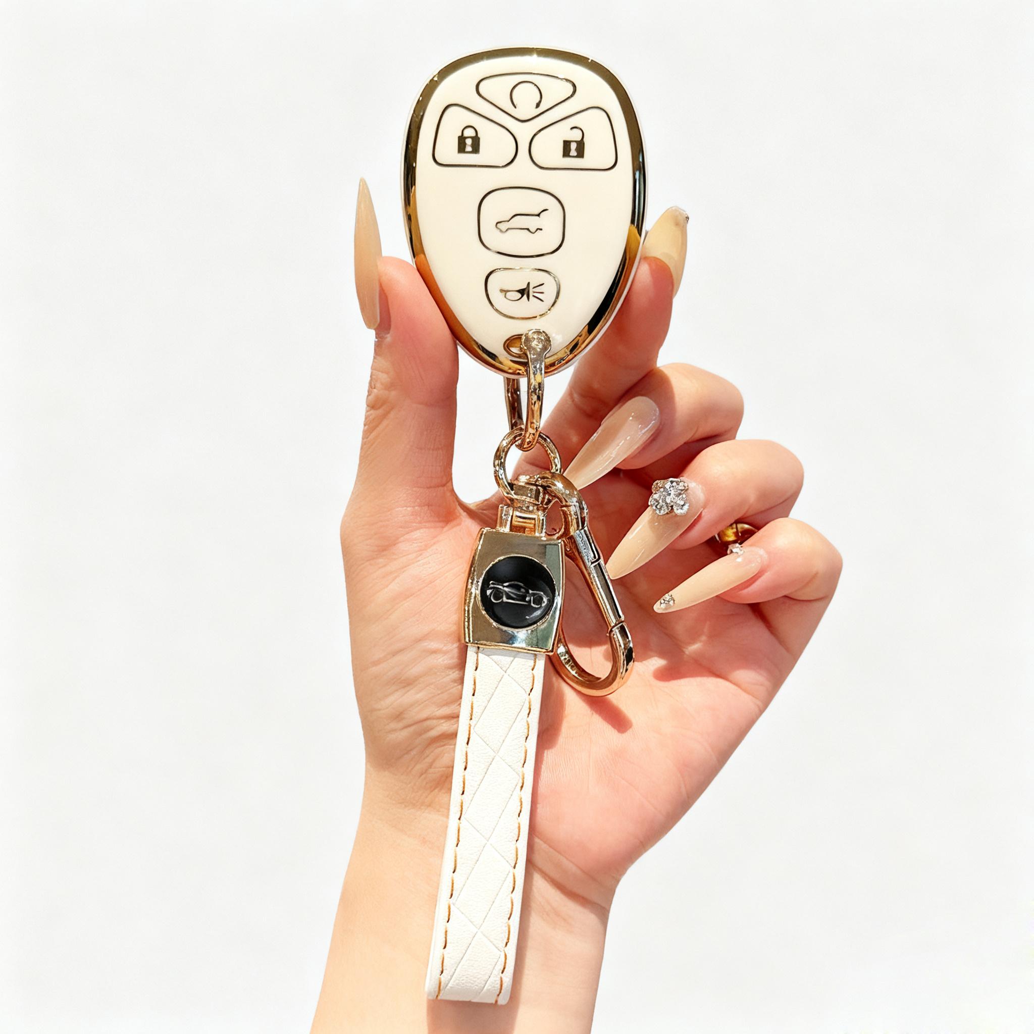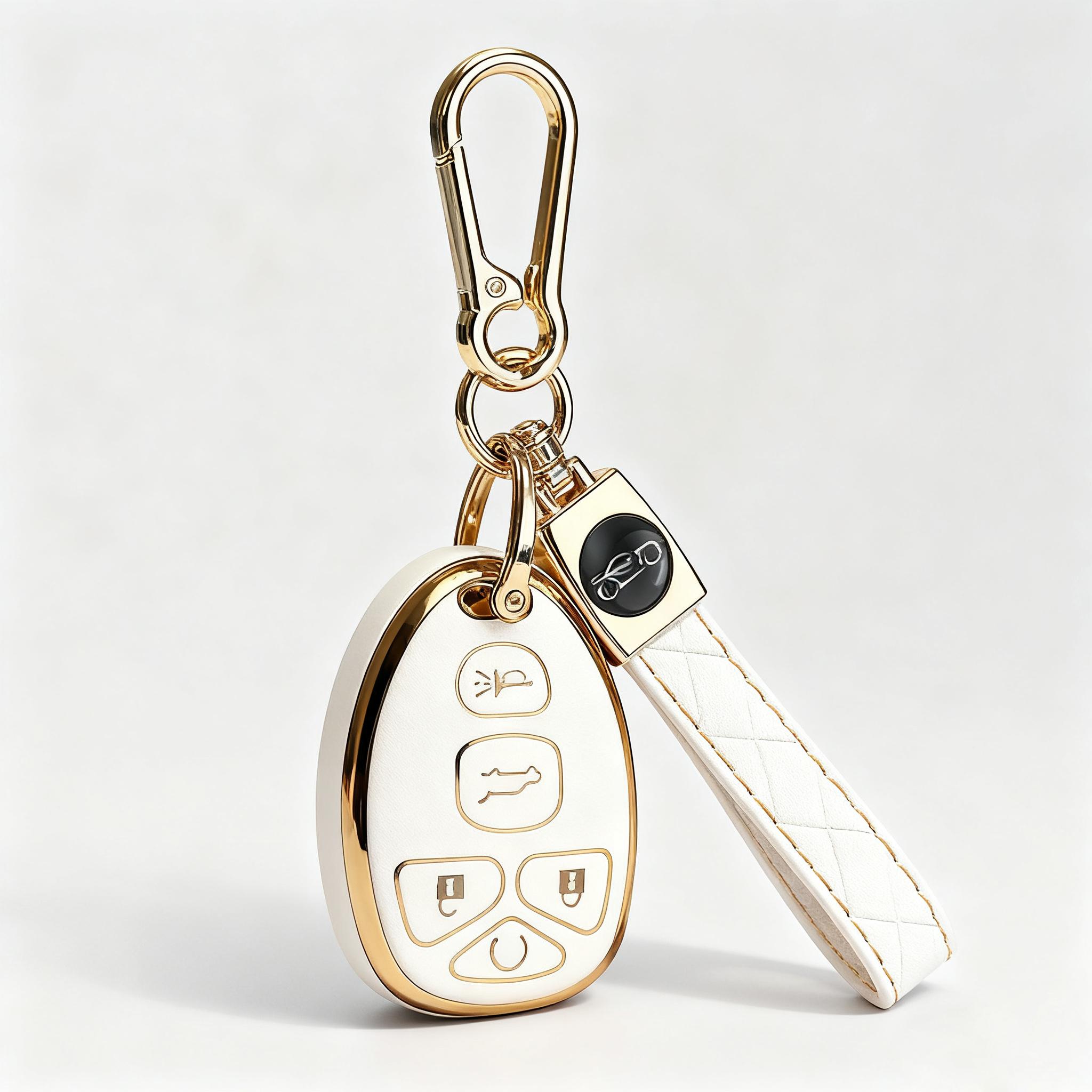 Key Fob Shell for Chevy Suburban Tahoe Traverse/GMC Acadia Yukon/Cadillac Escalade SRX/Buick Enclave/Saturn Outlook 5 Button Car Keyless Entry Remote Key Fob Case Cover (Black White) Smart Fob Replacement Cover